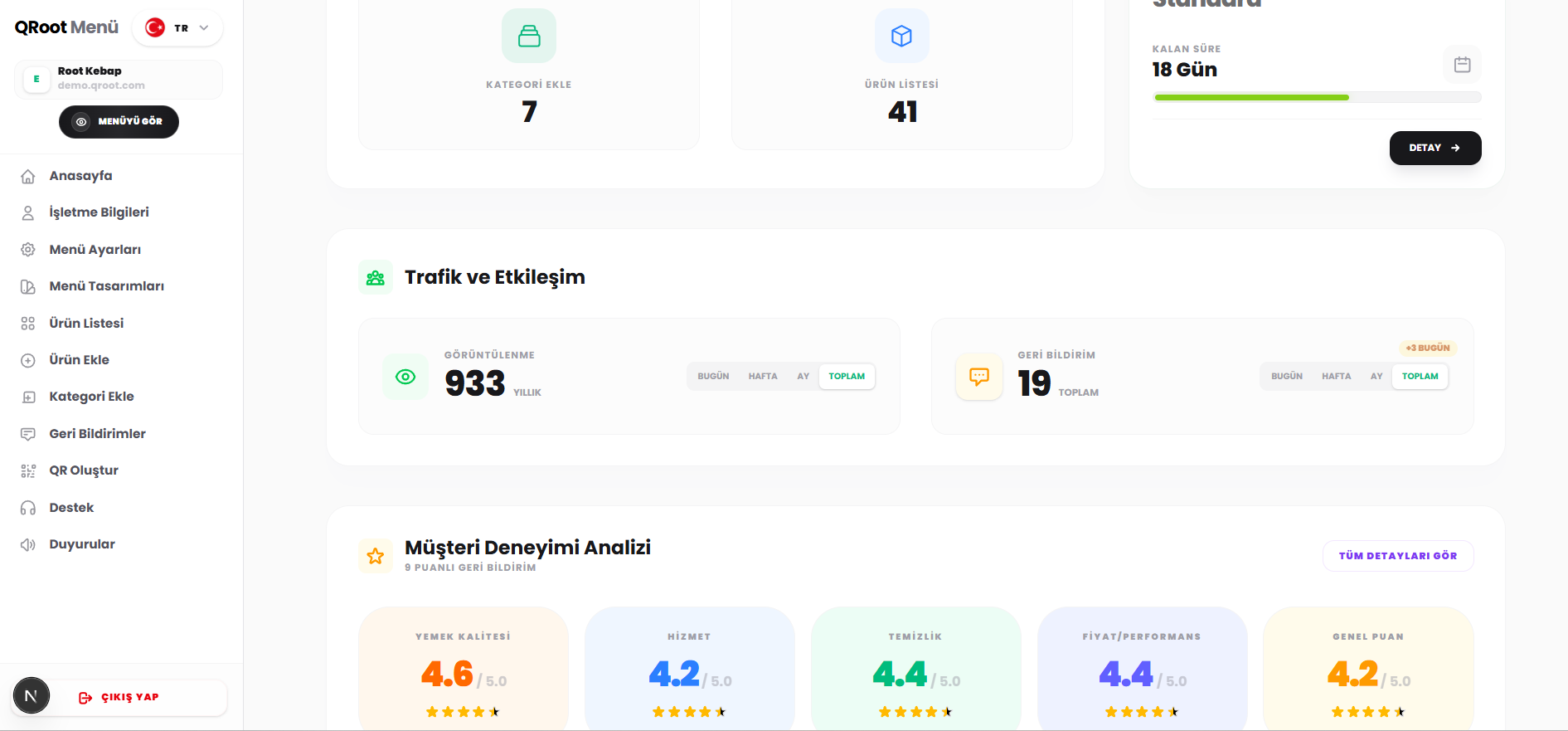 Menünüzün görüntülenme sayıları ve kullanıcı etkileşimleri hakkında detaylı verilere ulaşın.