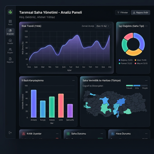 SVETA, tarımsal saha verilerini toplayan, analiz eden ve risk yönetimini kolaylaştıran profesyonel bir platformdur. Üretici takibinden anket yönetimine, istatistiklerden raporlamaya kadar her şey tek çatı altında.